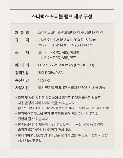 제품에 포함되어 있는 케이블로만 충전해야되고 충전기는 포함되어있지 않습니다. 3단계 밝기 조절이 된다고 합니다.